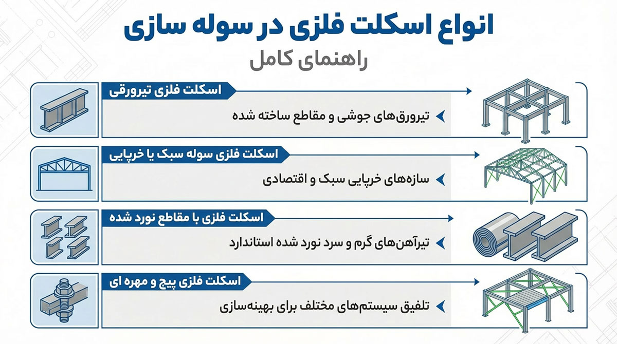 انواع اسکلت فلزی مورد استفاده در سوله سازی : در فرآیند سوله سازی، اسکلت فلزی اصلی ترین بخش سازه محسوب میشود که تمام بارهای ثقلی و جانبی...